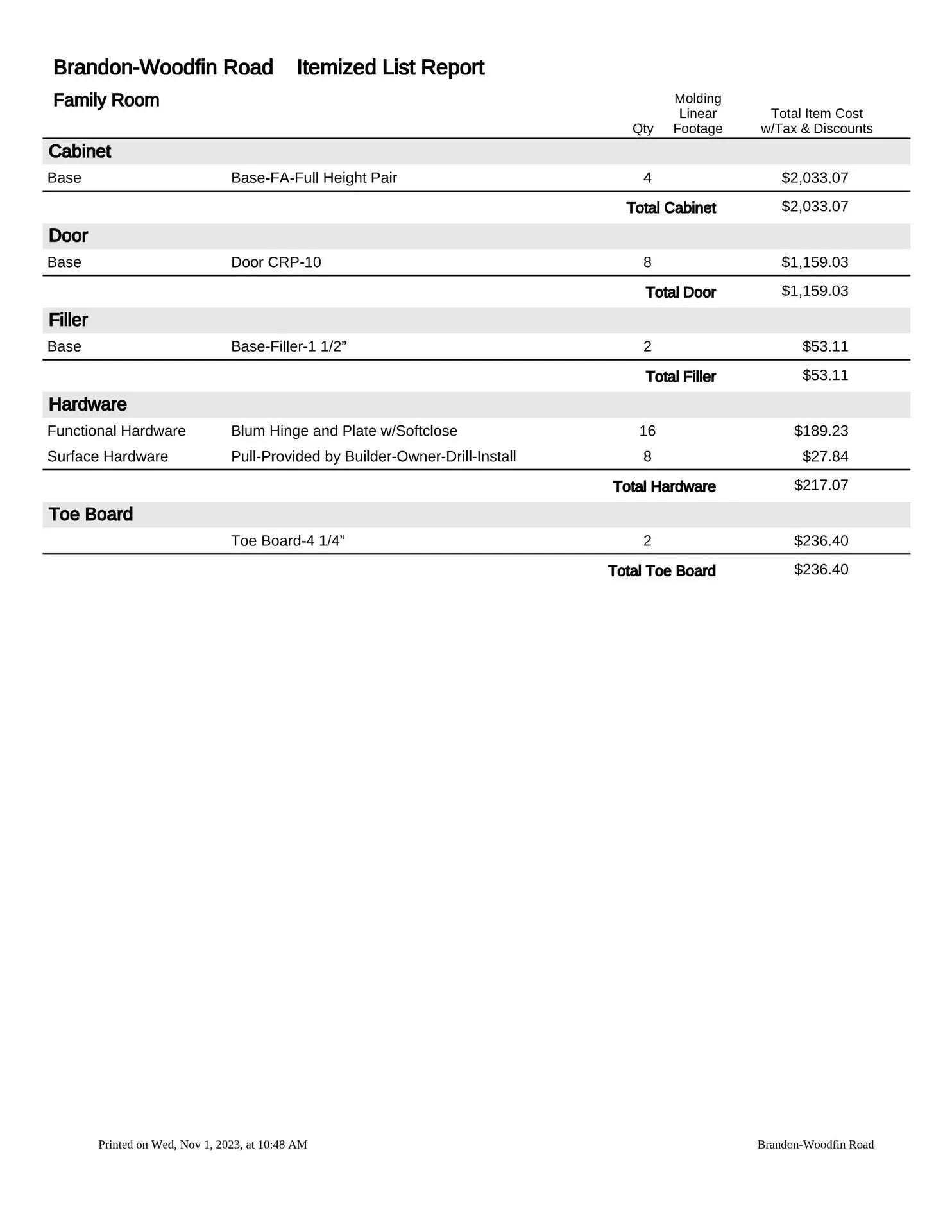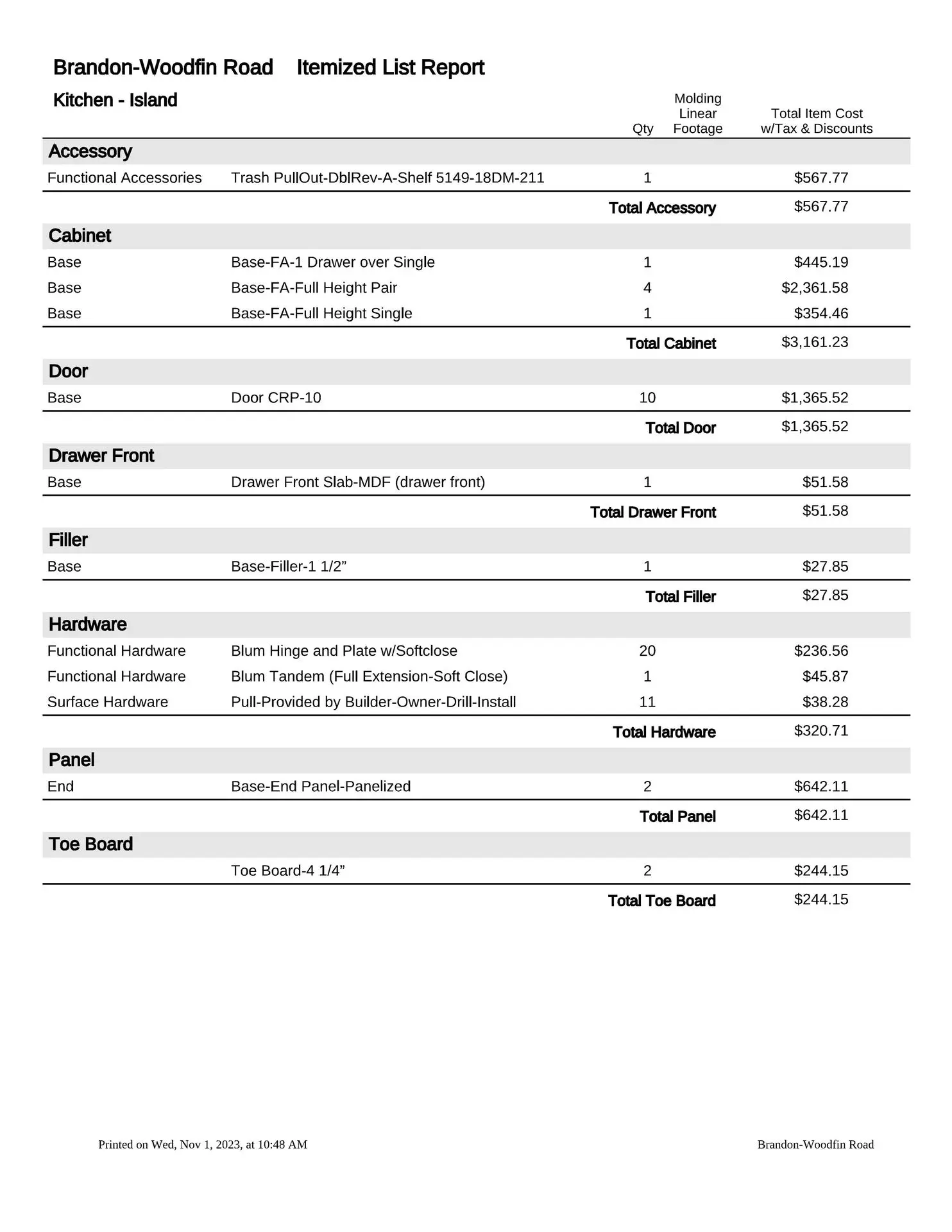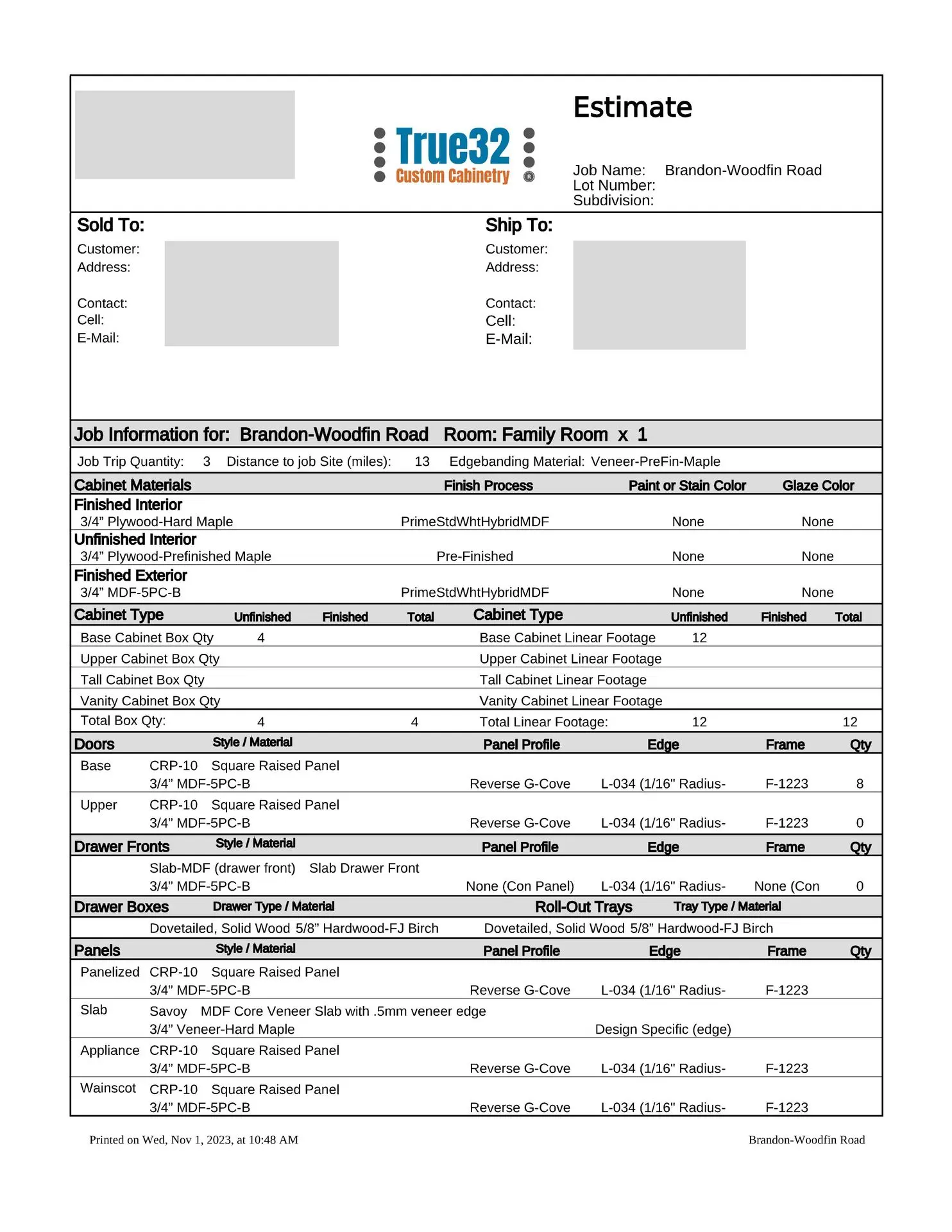 At this point, we will provide you with a formal estimate. These estimates are very detailed and will provide you with the information you need to make a fully educated decision about your custom cabinetry requirements. We are more than happy to provide several alternate pricing scenarios, so please do not hesitate to ask. If you think you might want to upgrade to an applied mold door, upgrade the drawer box, change from slab to raised panel ends, or any other change, addition or subtraction, we will be more than happy to accommodate those change requests (this is the time to do so, not after the manufacturing process has been put into motion).