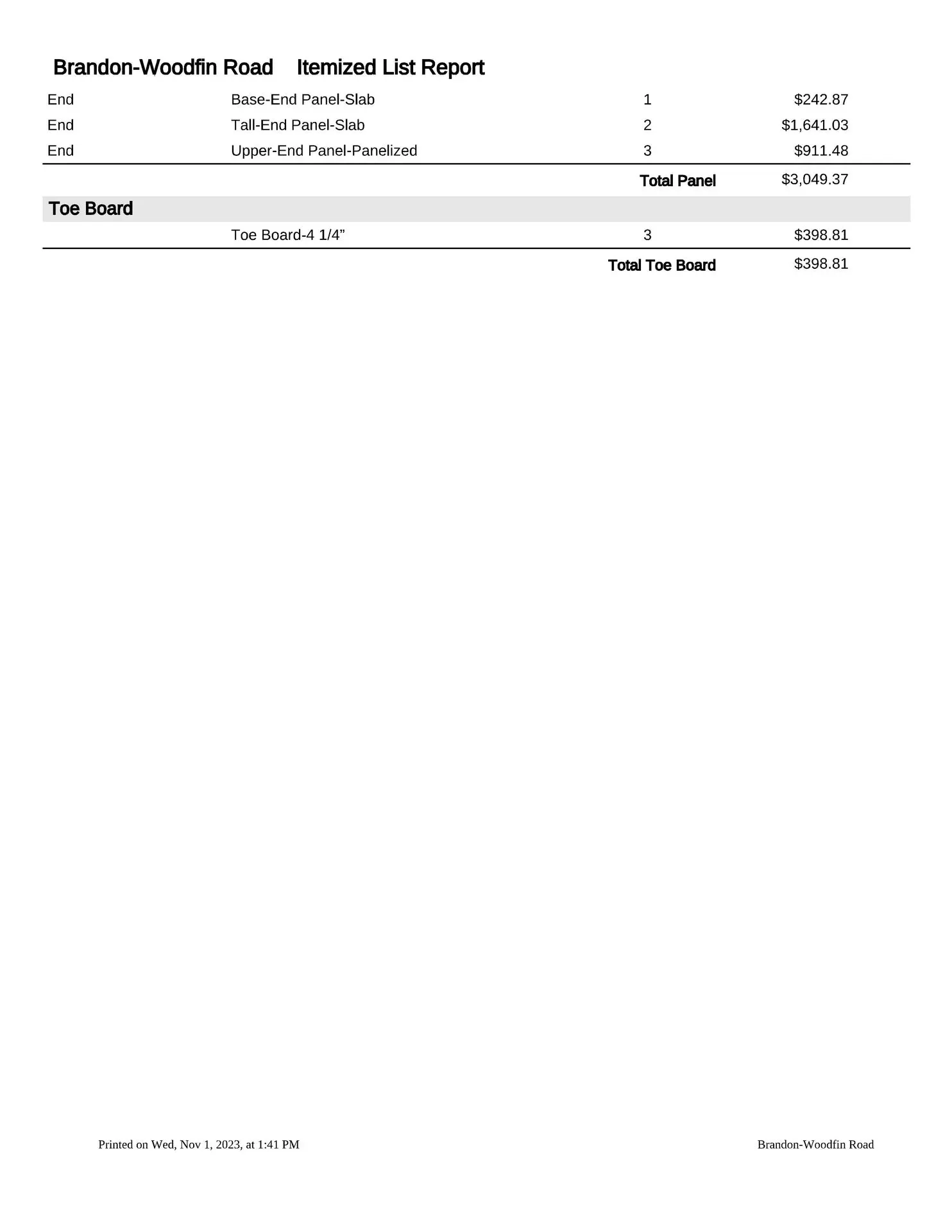 Sample Formal Estimate